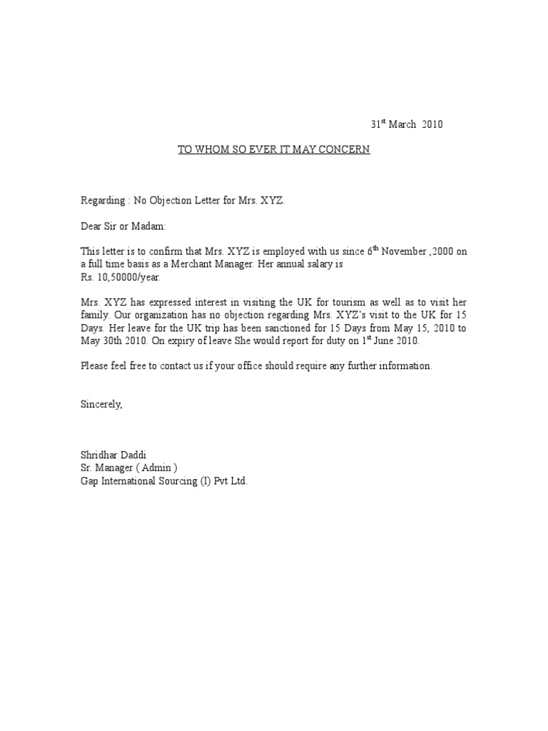 How To Draft A Noc For Your Tourist Visa Application Basics With A Sample Format