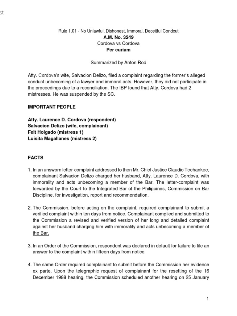 Cordova Vs Cordova Complaint Justice