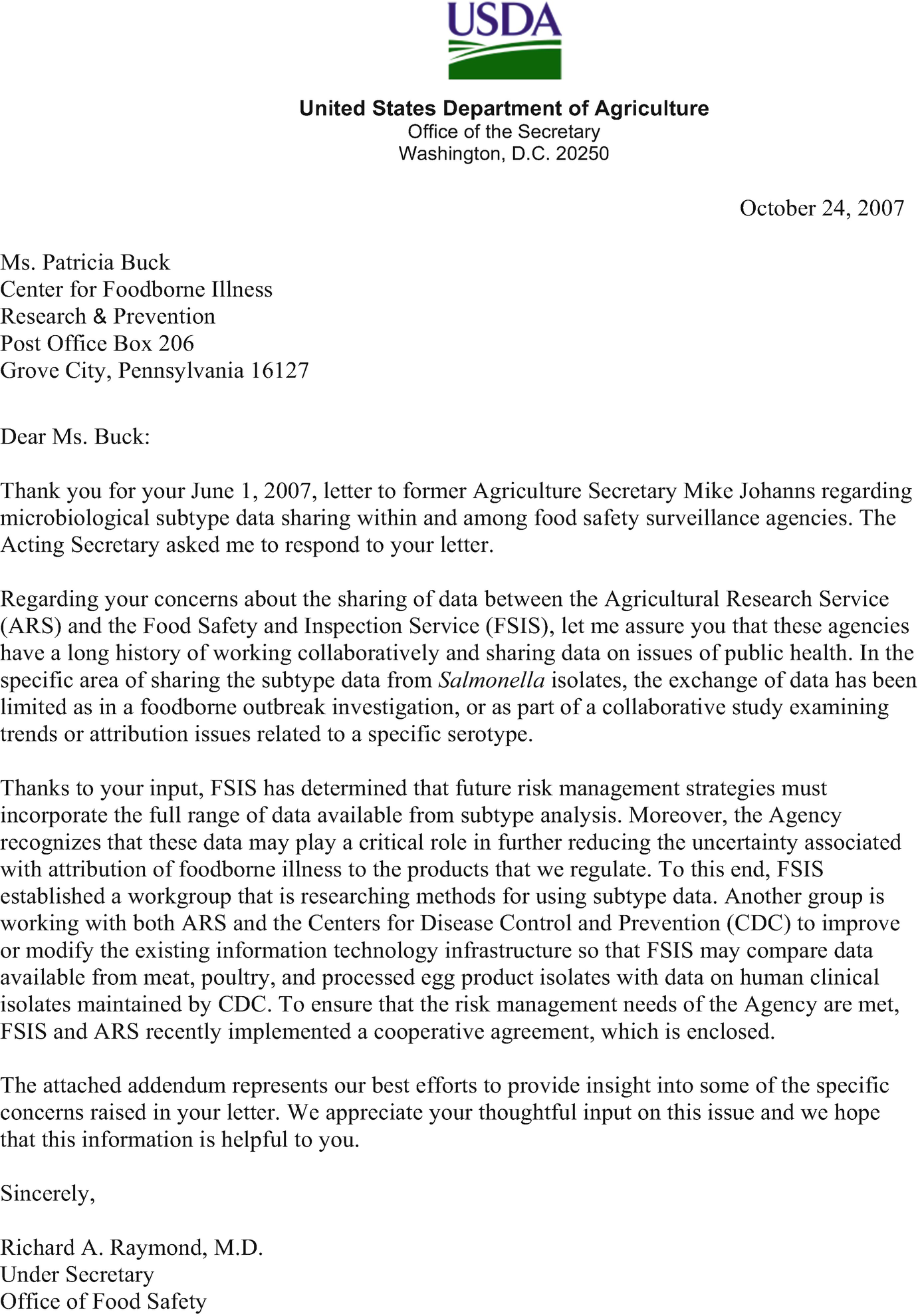 Letter Report Letter Report On The Review Of The Food Safety And Inspection Service Proposed Risk Based Approach To And Application Of Public Health Attribution The National Academies Press