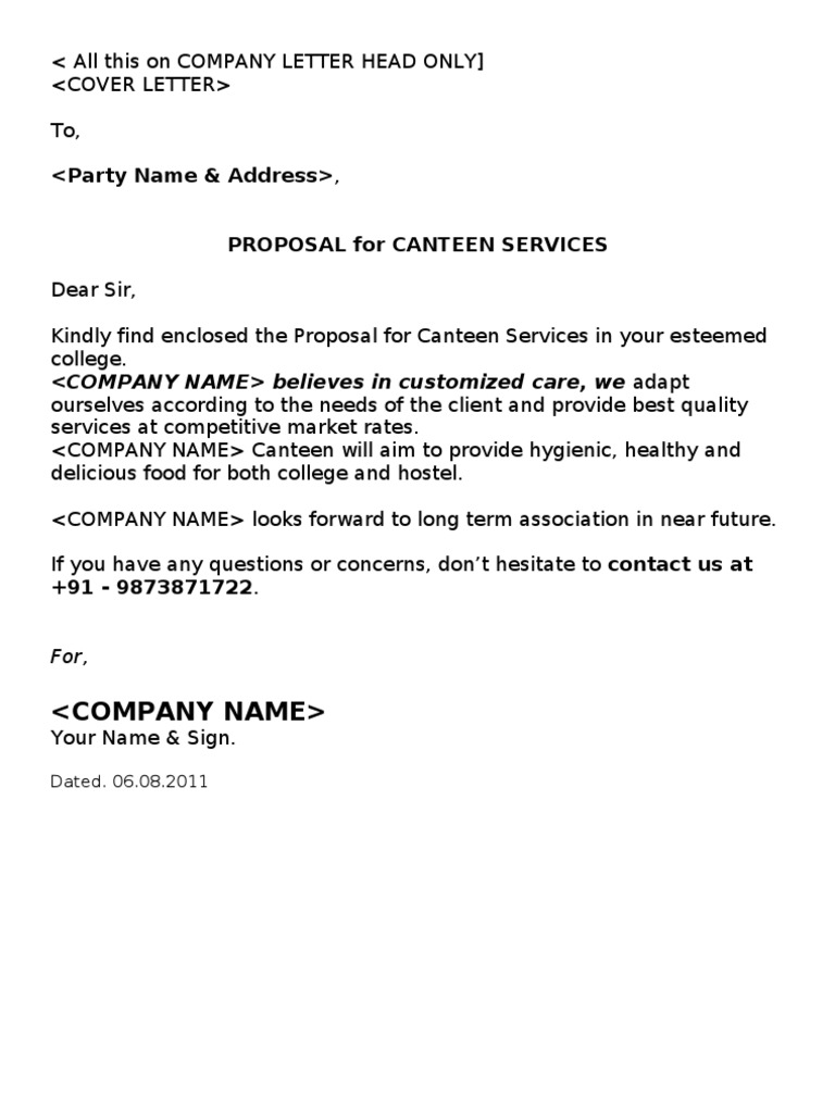 Canteen Services Proposal Template For Word Proposal Templates