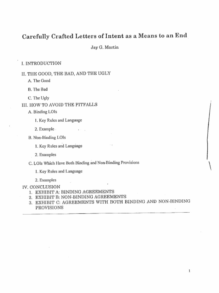 Letters Of Intent The Purpose The Pitfalls