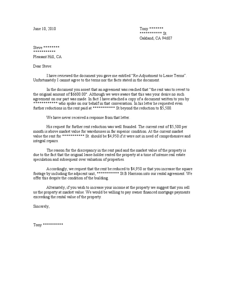 Letter To Landlord For Not Increasing Rent Word Excel Templates