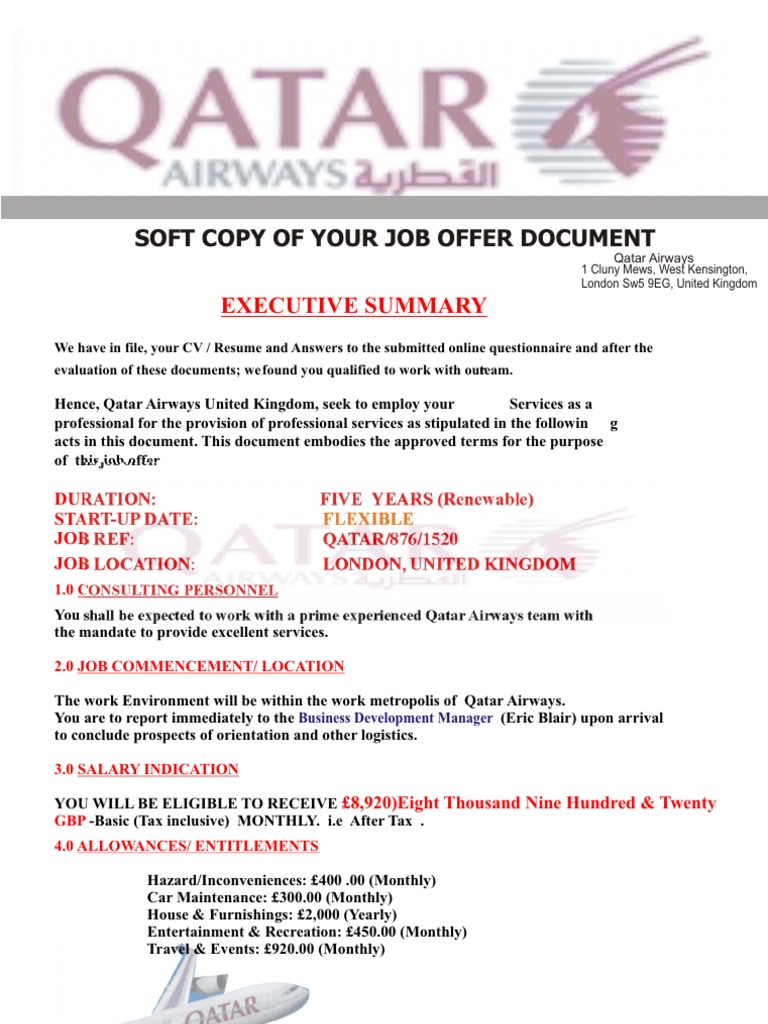 Qatar Airways Job Offer Letter