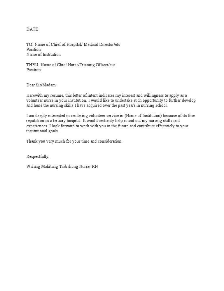 Nurse Trainee Job Application Letter Templates At Allbusinesstemplates Com