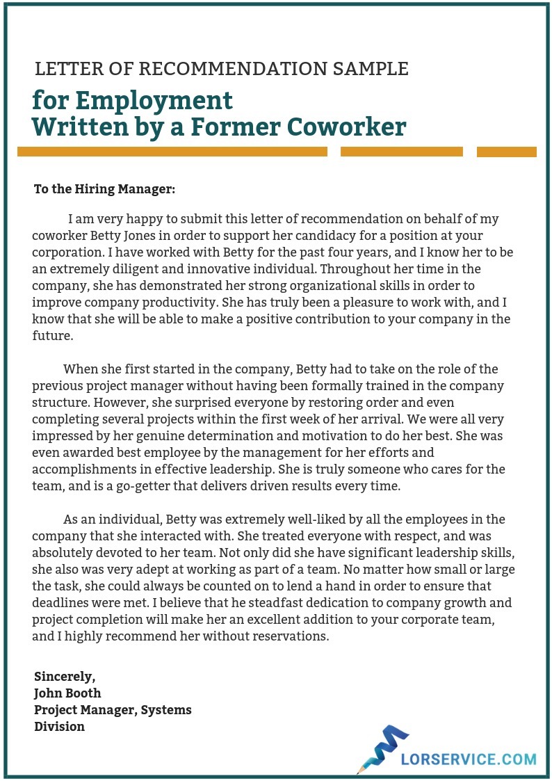 30 Letter Of Recommendation For Coworker Examples Templatearchive