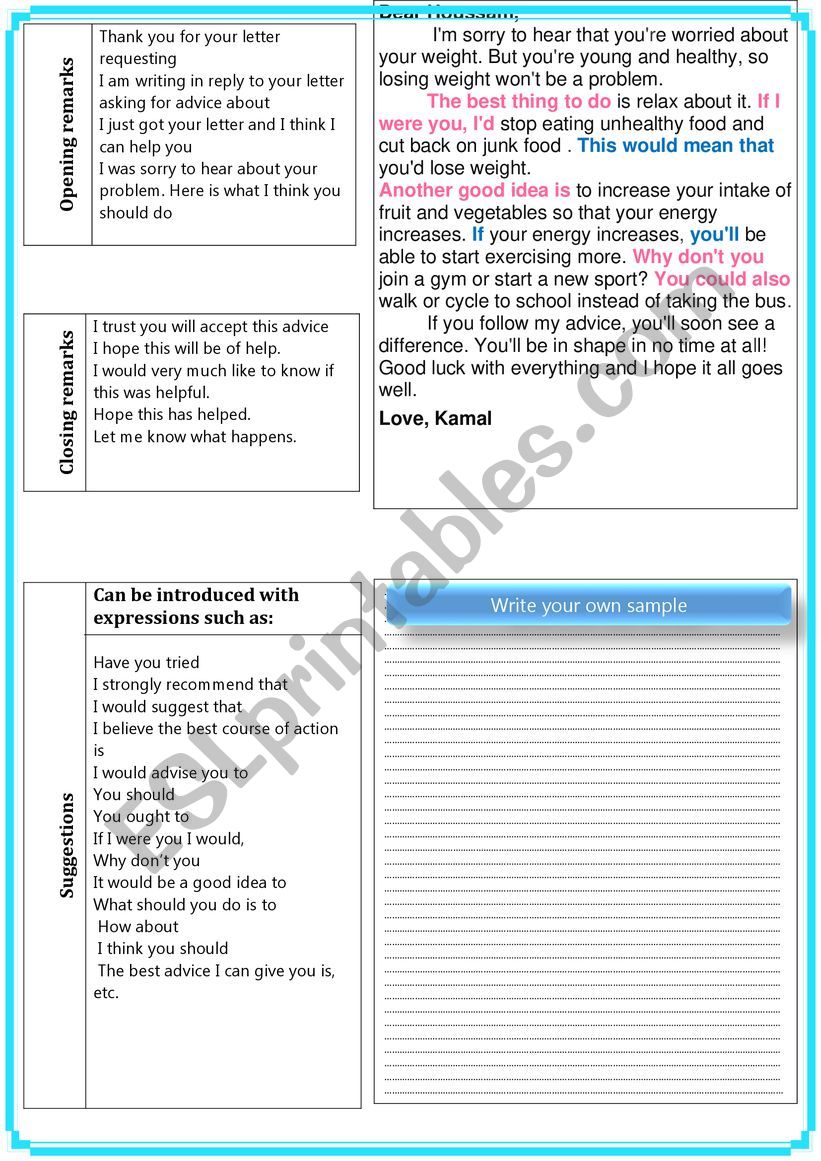 Writing Skills Advice Letter Esl Worksheet By Hisham
