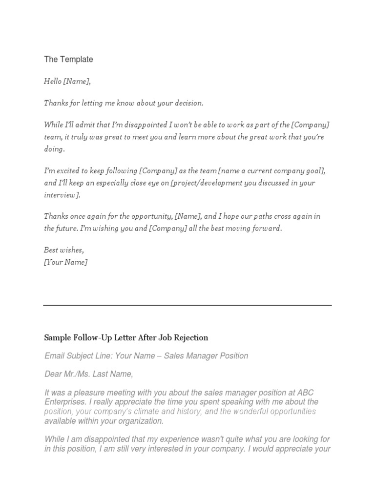 Sample Follow Up Letter To Send After Being Rejected For A Job