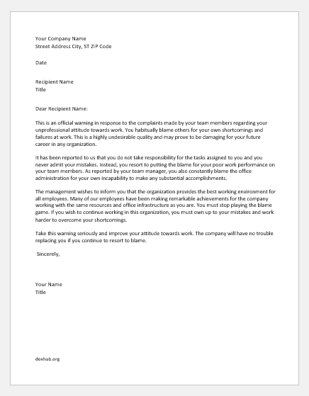 10 Warning Letters For Common Unprofessional Behaviors Document Hub